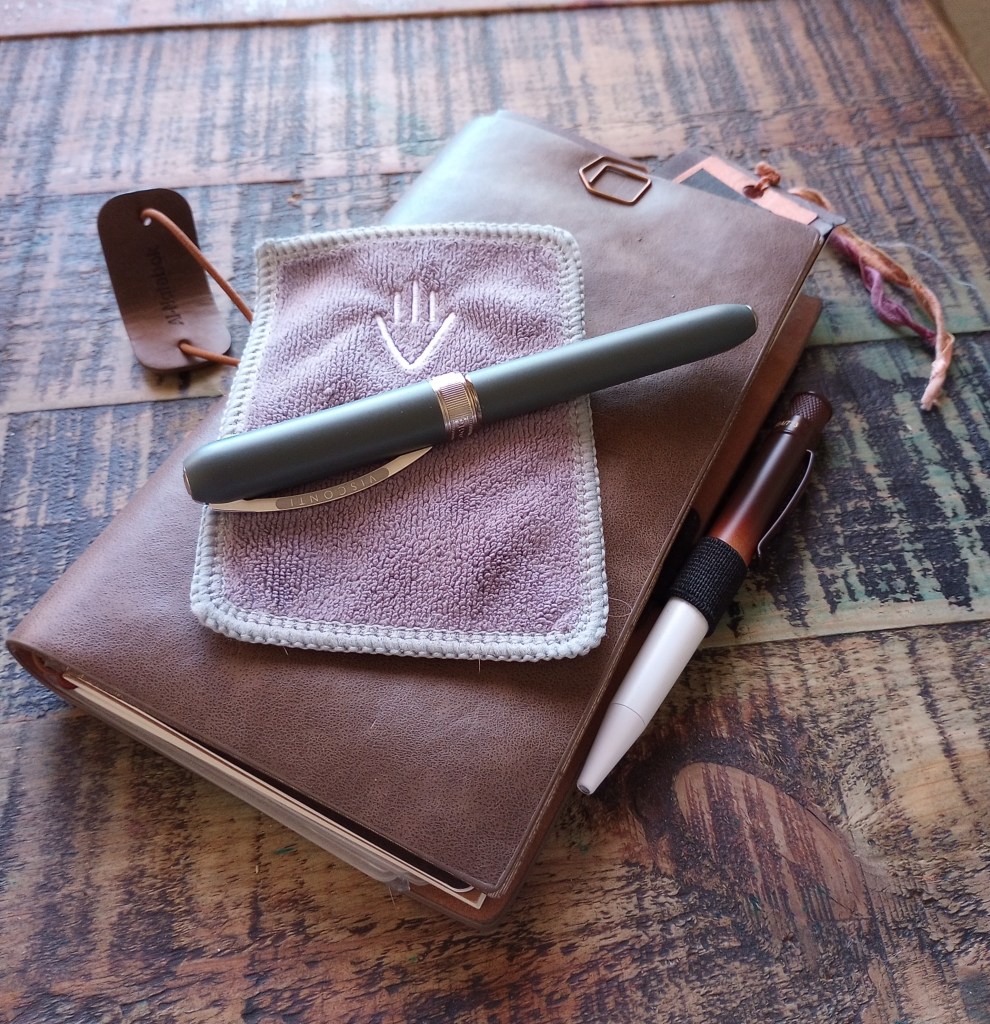 2023 pens for my pen pals 😉 Can you guess what pen is with the Endless notebook? How about the cloth under my eco-logic Visconti fountain pen? OR what is that with my journal in the pen loop? I’ll link to that Limited Edition Retro 51 rollerball. Mine is #584 of 600.